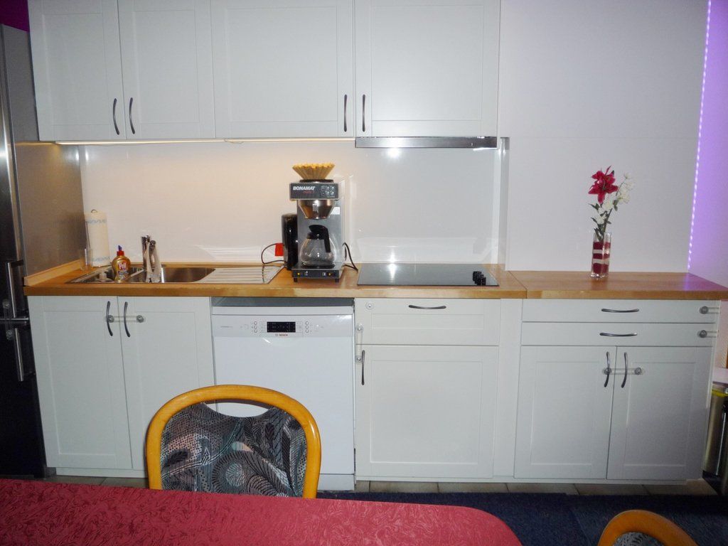 On our ceramic hob must not be cooked. However, our kitchen has a guest oven with 2 hotplates, a microwave for heating food, a guest refrigerator, a coffee machine, kettle, dishes and glasses.